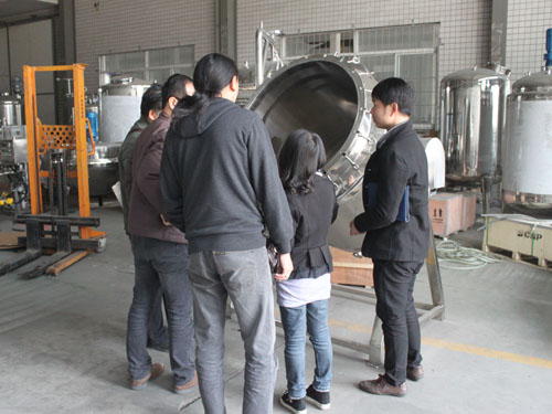 圖為客戶在工廠參觀可傾式蒸煮鍋